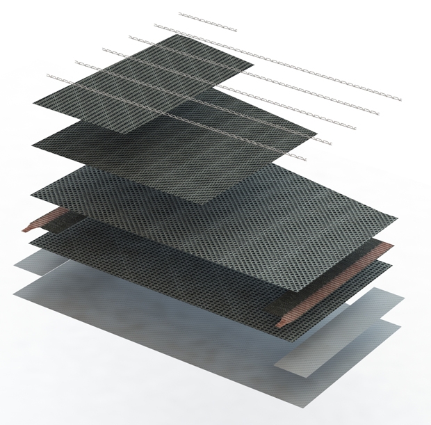 Im zweiten Schritt wird der Sandwichaufbau durch den Wabenkern und die hinteren Decklagen komplettiert.